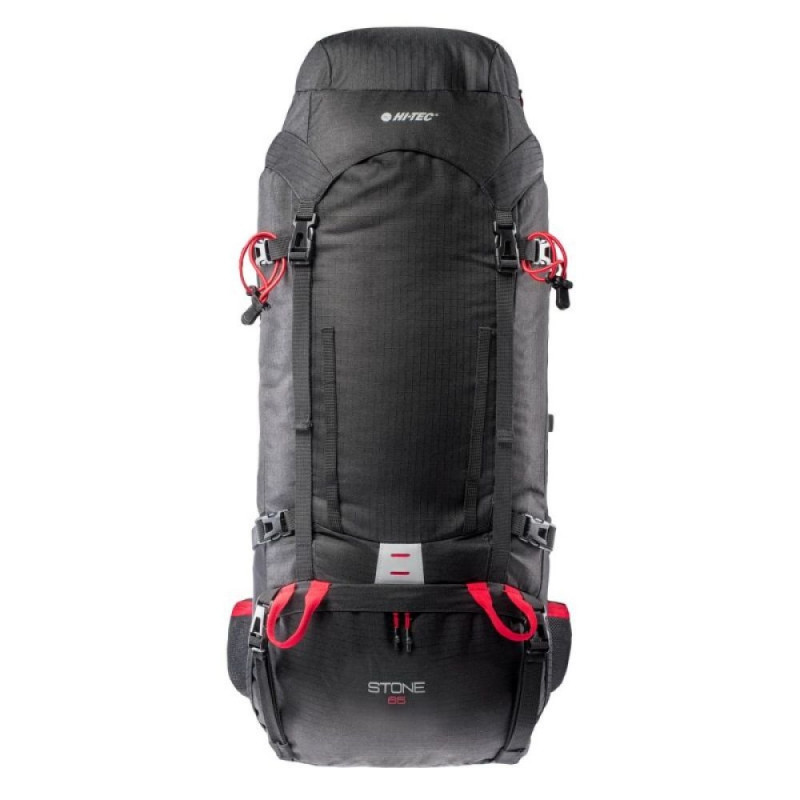 Hi-tec Stone 65 Backpack Properties: capacity: 65 l; dimensions: 70 x 28 x 20 cm; weight: 1.65 kg; pockets: main divided, two side pockets, lower one with a rain cover ergonomically contoured back; ventilation panels on the back reflective elements;Warning: Last items in stock!
