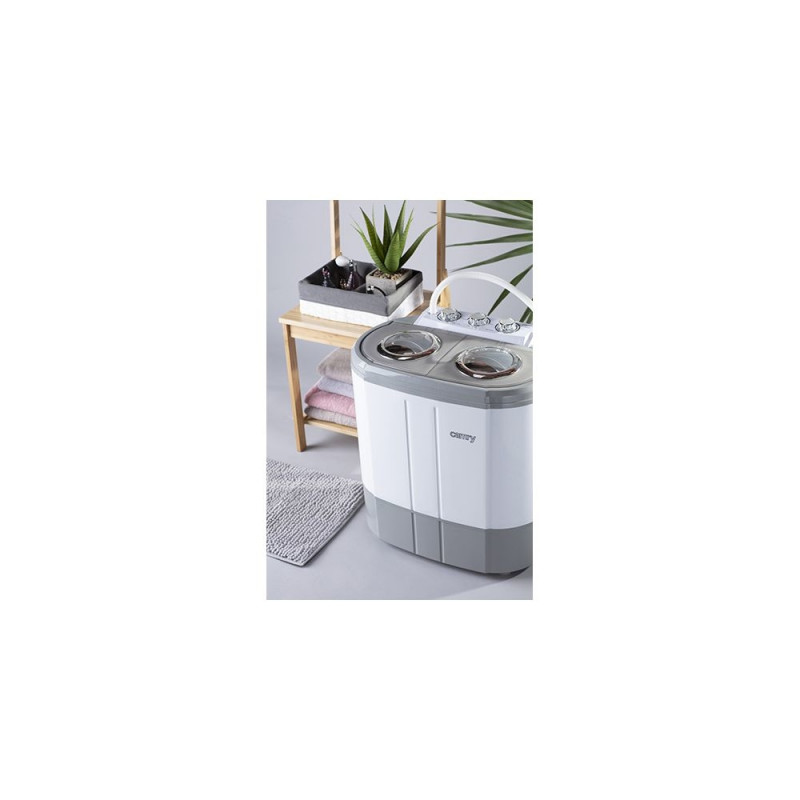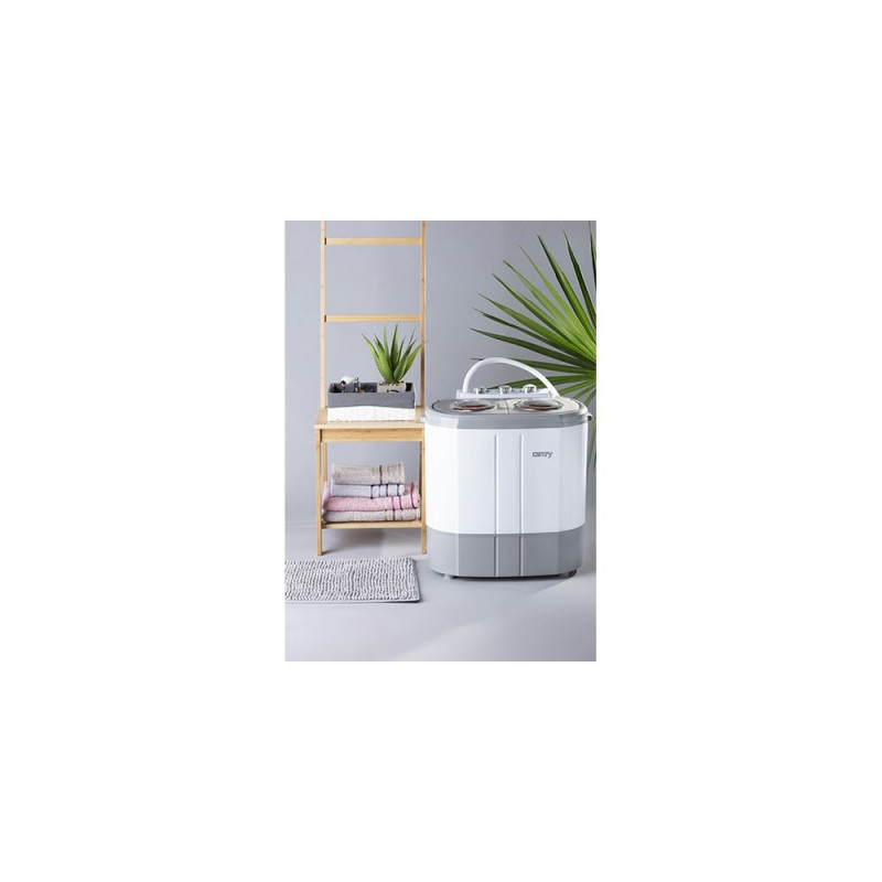 Turystyczna pralko-wirówka CR8052 umożliwia zadbanie o czyste ubrania poza domem - na przykład podczas wypoczynku na kempingu lub w domku letniskowym. Kompaktowy rozmiar pralki znacznie ułatwia jej przewożenie, co jest ważnym atutem dla osób, które na wyjazd i tak potrzebują dużej ilości rzeczy. Model CR8052 posiada dwie oddzielne komory - jedną przeznaczoną do prania (wsad 3kg), drugą do wirowania (wsad 1kg) już wypranych ubrań. Istnieje możliwość wybrania jednego z dwóch programów prania (normalny/delikatny).