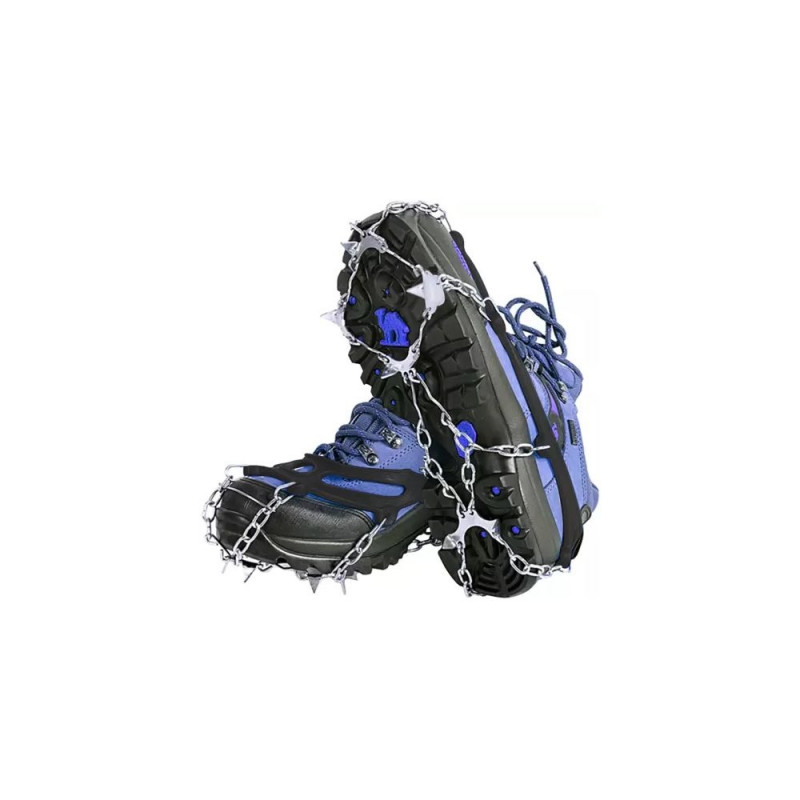 Elastyczne nakładki na buty z kolcami antypoślizgowymi to niezbędny element ekwipunku turysty. Każda nakładka zawiera 8 zębów z łańcuchami wykonane ze stali nierdzewnej. Zapewnią bardzo dobrą przyczepność do gruntu. Nadają się na jesienną oraz zimową porę roku. Gdy mamy podmokłe lub zamarznięte podłoże.