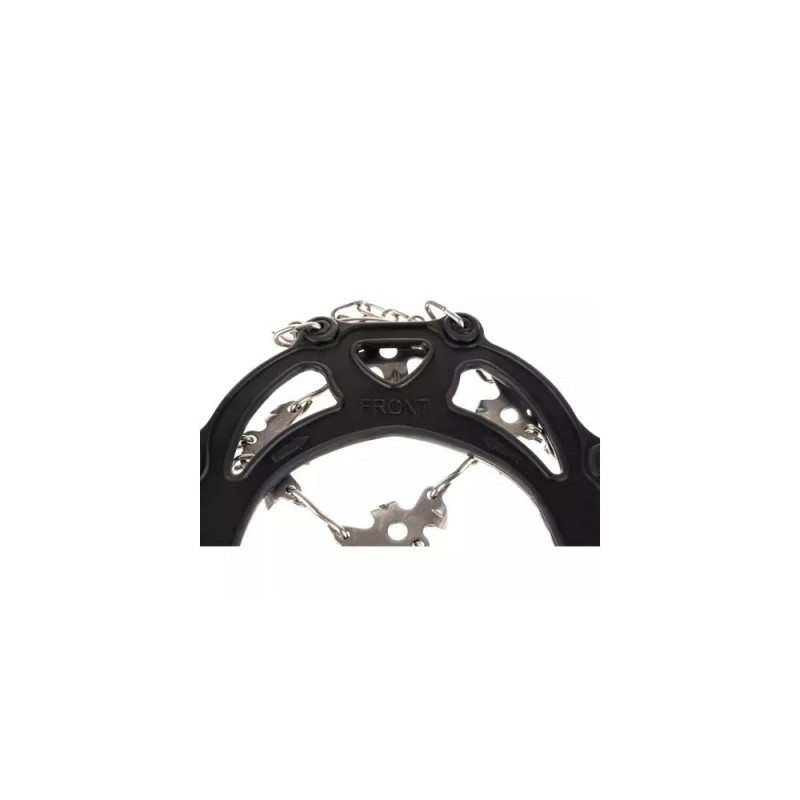 - NIERDZEWNE ŁAŃCUSZKI ? wykonane ze stali. Są odporne na rdzę i korozję. Wystarczy naciągnąć elastyczny kołnierz i nałożyć na podeszwę buta. Nasze raczki nie zniszczą obuwia, gdyż idealnie przylegają do buta.