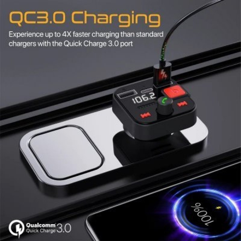 The PROMATE PowerTune-30W Bluetooth FM Transmitter is a device that will make any trip more convenient. Now you don't have to think about extra cords and connecting them to your phone to listen to music or talk to a person on the car radio. Your device allows you to connect to the phone with Bluetooth. The device is equipped with 3 USB outputs, one of which is equipped with QC3.0 fast charging technology, and the other port is equipped with PowerDelivery PD30W technology.
