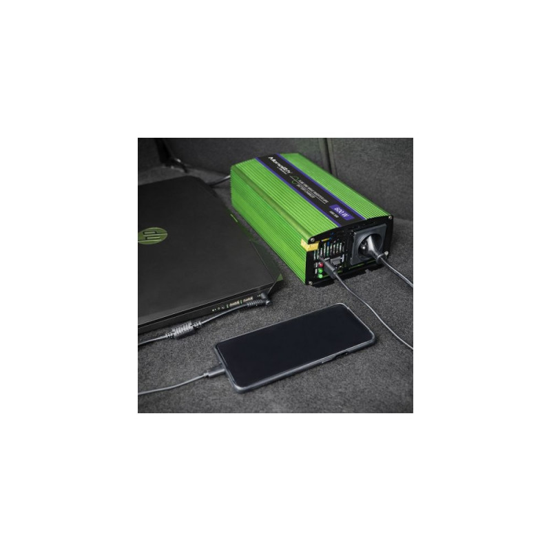 Qoltec Monolith power adapter/inverter Auto 600 W Green