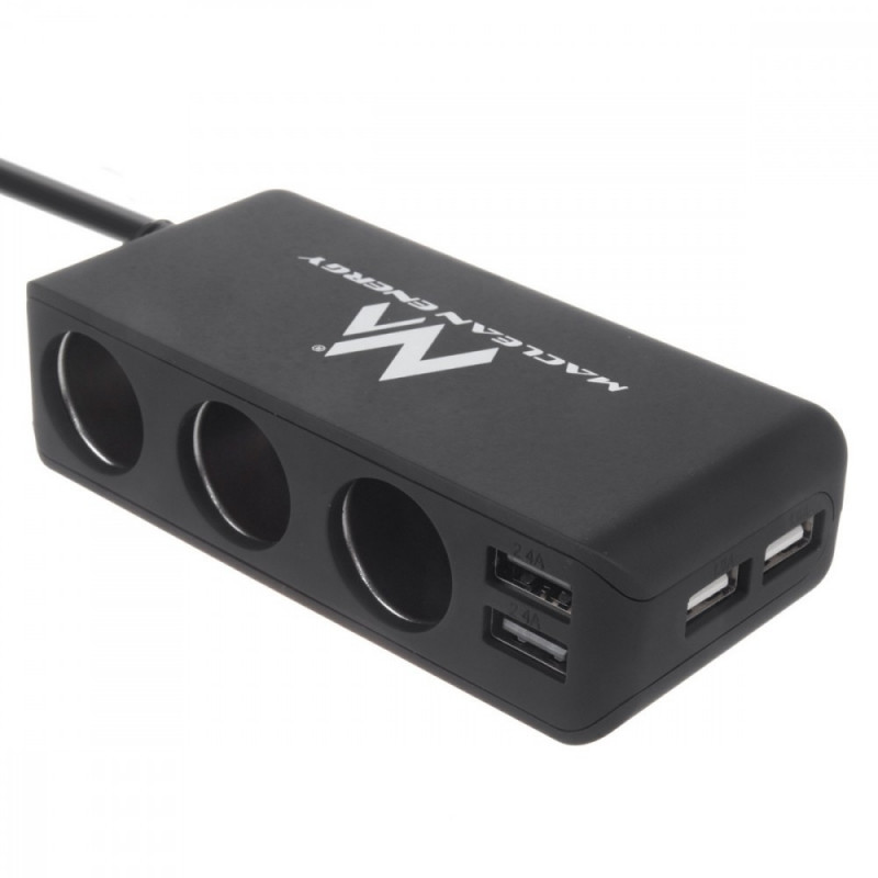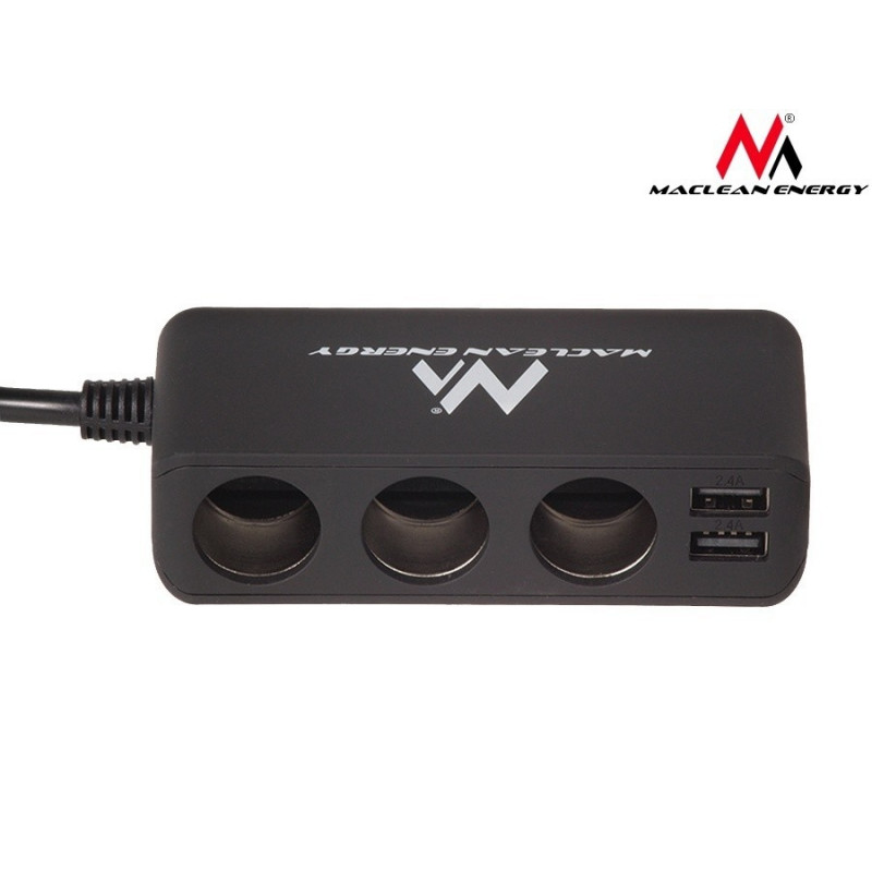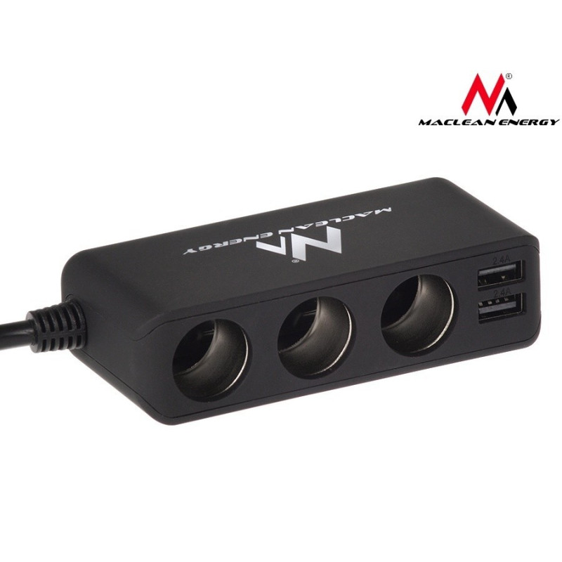 Maclean MCE117 Charger Car Adapter Triple 3 Car Cigarette Lighter Plugs 2xUSB