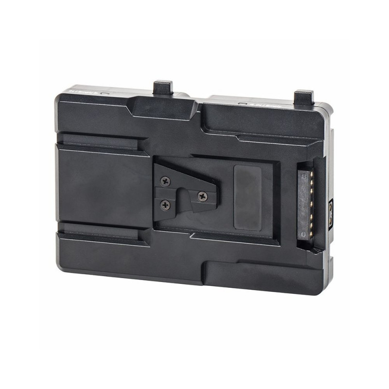 The CAME-TV DUAL V-MOUNT power plate supports two "V-Lock" batteries and features three output ports, including two D-TAP outputs. It allows for hot-swapping of batteries without interrupting power to connected devices.