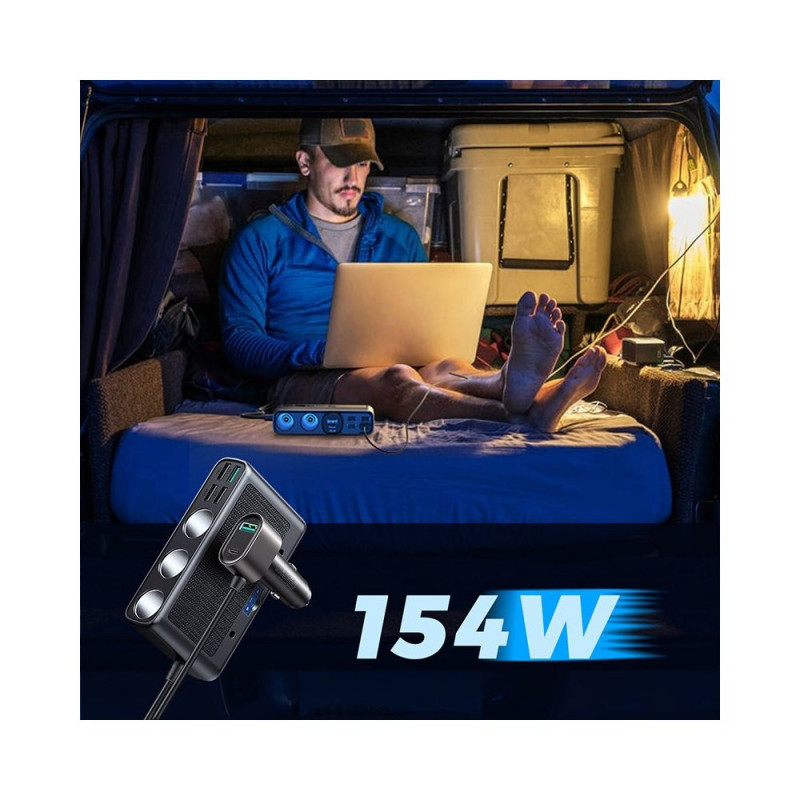 - Your vehicle gains new possibilities. In addition to connecting devices to USB ports, you can use 3 additional cigarette lighter connectors. This charger can work with a load of up to 154W!