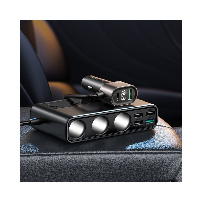 Joyroom car charger with cigarette lighter port splitter (3 x 12V, PD USB Type C, QC3.0 USB-A, 4 x USB-A) 154W black (JR-CL06)