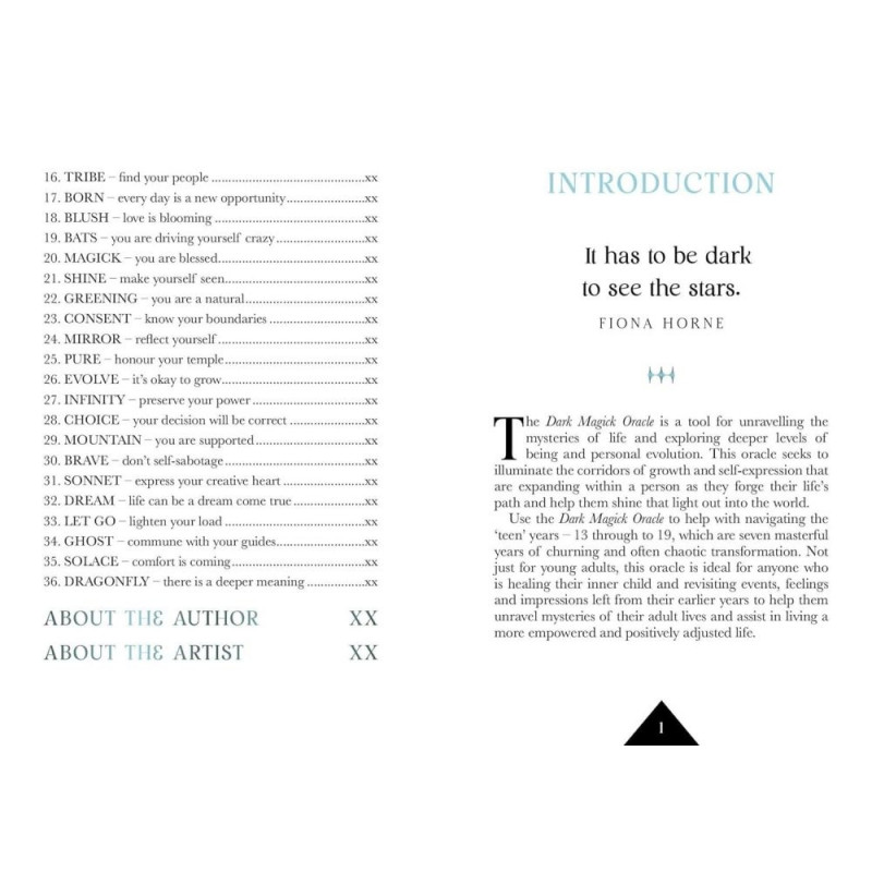 The Dark Magick oracle is a tool that helps reveal the secrets of life, explore deeper levels of being and personal evolution. This deck is dedicated to the darker and more complex aspects of life, difficult and sometimes uncomfortable feelings and emotions, and less popular choices. This is a deck designed for individuals who don't fit easily into certain places or categories. This oracle is also great for adults who are healing their inner child by returning to events, feelings and impressions from previous years to help them live a more empowered and positively adjusted life. Each card is accompanied by a spell or ritual and suggestions for a daily personal magical practice to help you heal and process life's lessons.