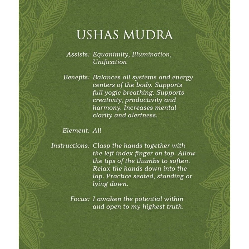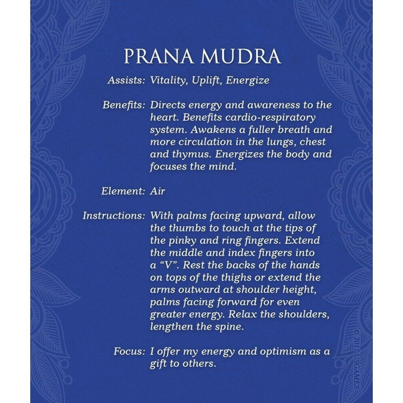 This special set of 40 bright cards illustrates 35 yoga mudras and 5 elements. The mudra poses for this deck have been specially selected to awaken and activate the energies of the five elements within us: Earth, Water, Fire, Air and Space. A 124-page instructional guide with full-color illustrations explores the many health and wellness benefits of these mudras. Each color-coded mudra includes instructions, practices, and guided meditations. This deck can also be used in conjunction with mudras to awaken the energy body.