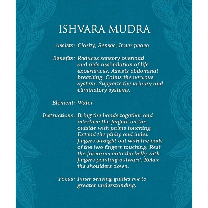 This special set of 40 vibrant cards illustrates 35 yoga mudras and 5 elements. The mudra poses for this deck have been specially selected to awaken and activate the energies of the five elements within us: Earth, Water, Fire, Air and Space. A 124-page instructional guide with full-color illustrations explores the many health and wellness benefits of these mudras.Warning: Last items in stock!