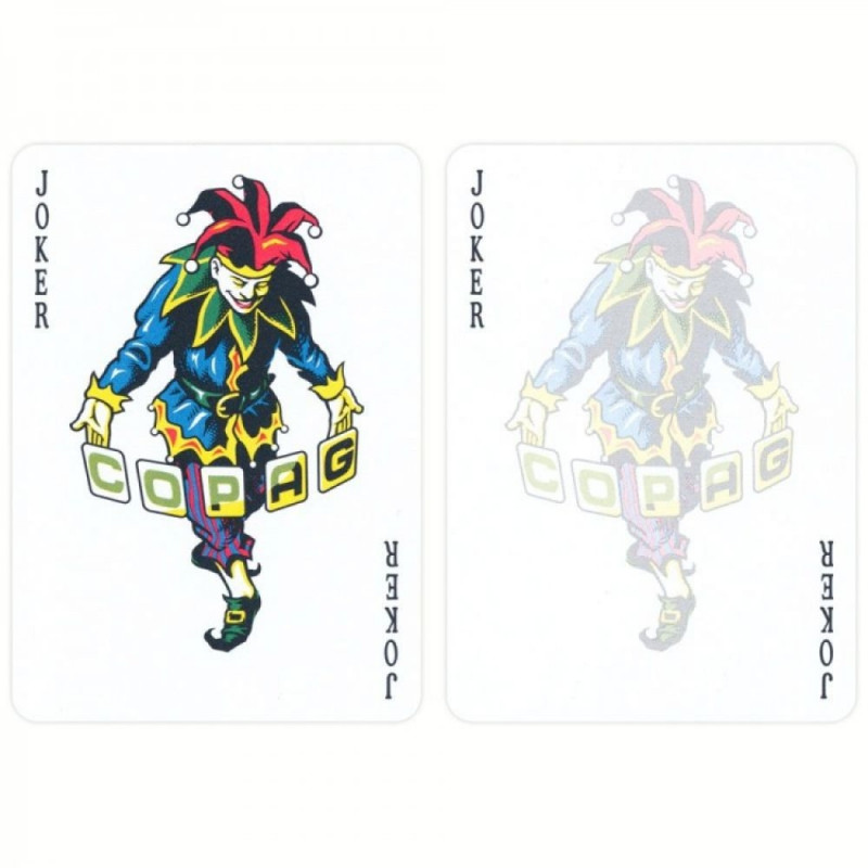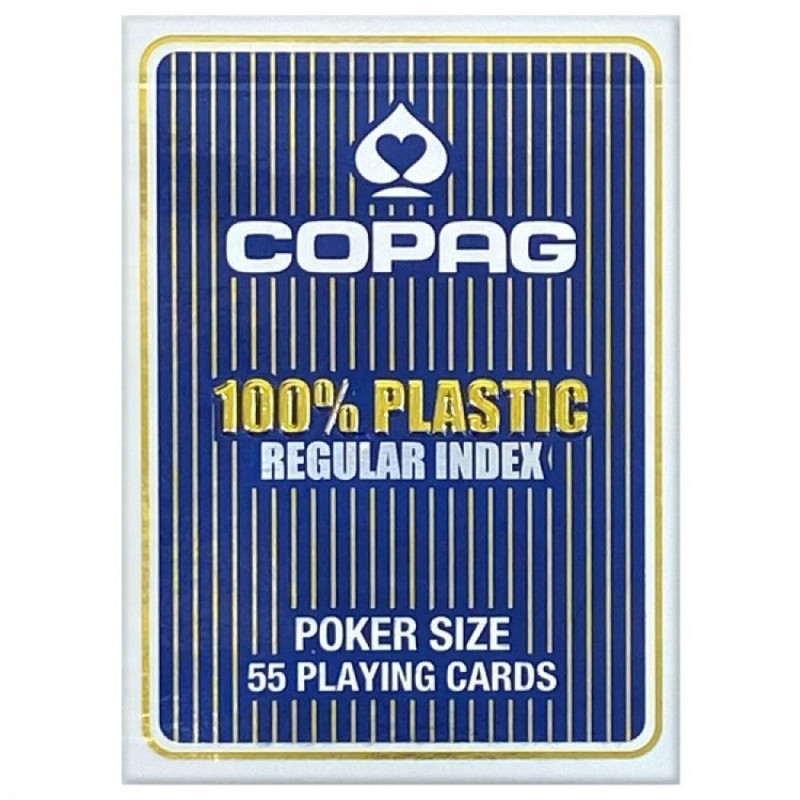 This Copag deck is made of high quality PVC plastic and is recognized worldwide. These standard Copag cards are opaque, waterproof and highly durable. This deck contains 55 poker-sized playing cards made by Cartamundi in Belgium. Standard playing cards are made of 100% plastic and come complete with 2 jokers and 1 Copag guarantee card. These poker cards come with 2 standard indexes in two corners.