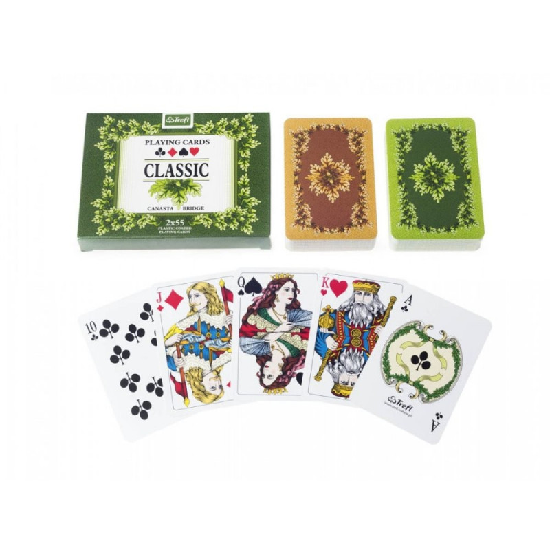 Karty Classic to wzór znany w Polsce od dziesięcioleci. Charakterystyczne bursztynowe i zielone rewersy ozdobione liśćmi dębu, a figury i kolory oznaczone międzynarodowym wzorem docenią gracze lubiący klasykę w tradycyjnym wydaniu. Karty są odpowiednie do wszystkich rodzajów klasycznych gier karcianych.