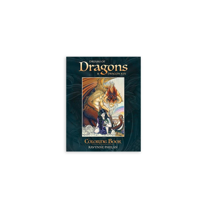 The coloring book features over 50 illustrations of dragons and dragon-inspired creatures, designed by artist Ravynne Phelan. It contains 96 pages and measures 27.5 x 21.5 cm, weighing approximately 490 g.