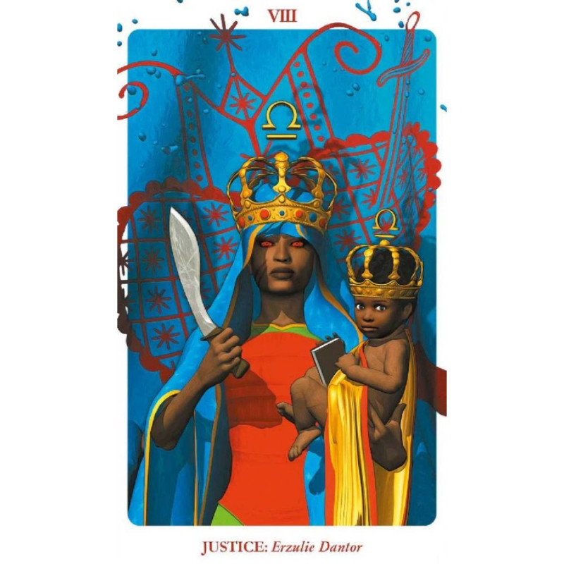 The Voodoo Tarot Spirit Box includes 78 illustrated cards and a 192-page color guidebook. The card dimensions are 20.7 x 13.5 x 5.5 cm and it weighs 734 g.
