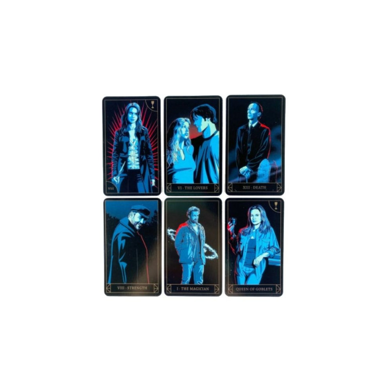 The Supernatural tarot deck includes 78 cards featuring characters from the series and an 88-page illustrated guide explaining card meanings. The cards are made of plastic-coated paper and measure 10 x 15 x 4.7 cm.Warning: Last items in stock!