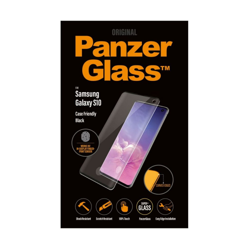 Ekraanikaitseklaas Samsung Galaxy S10, sõrmejäljetoega, ümbrisesõbralik, must, PanzerGlass