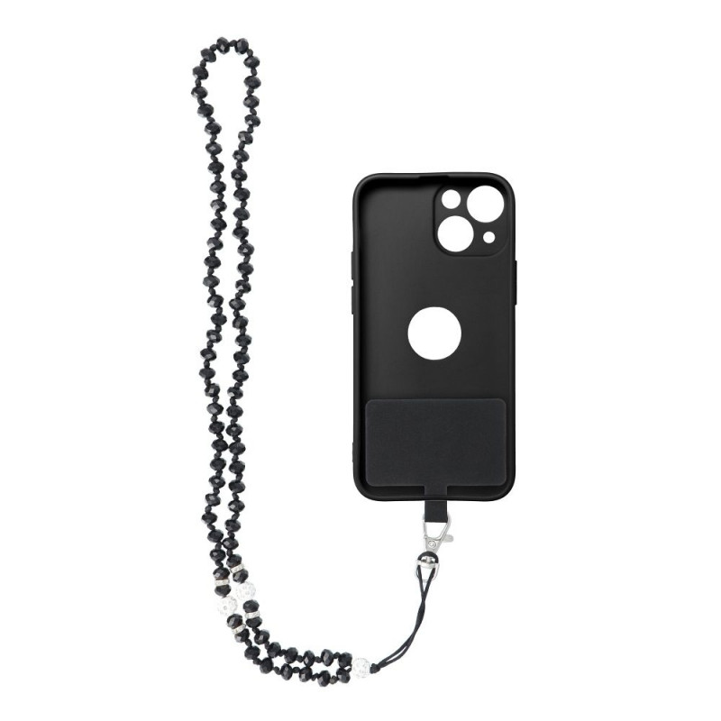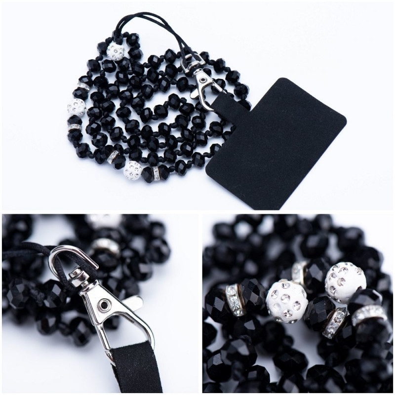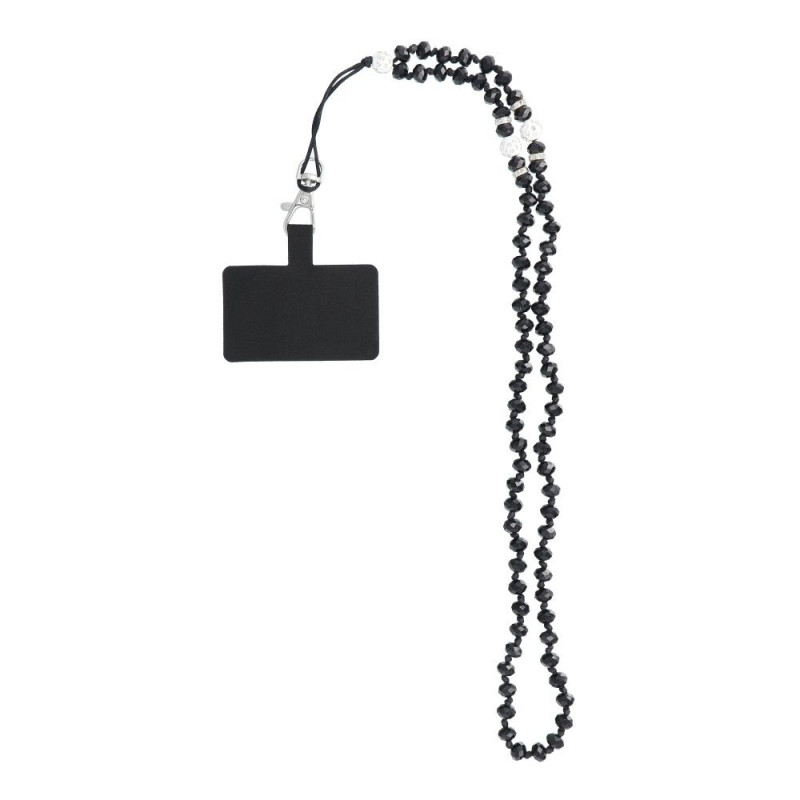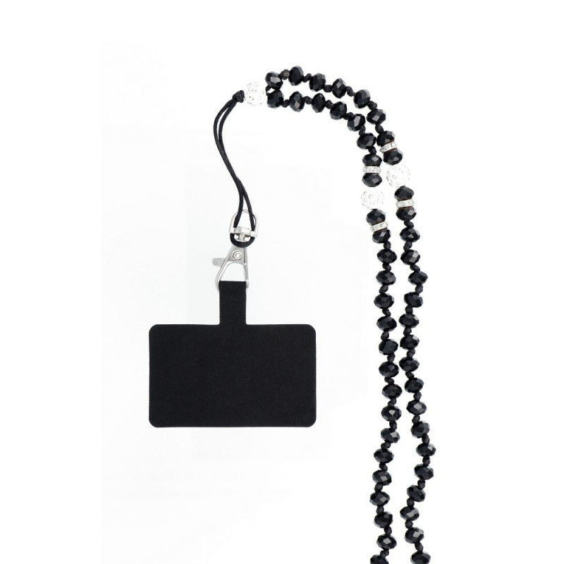 CRYSTAL DIAMOND Phone lanyard, Phone pendant / cord length 74cm (37cm in the loop) / on neck - black