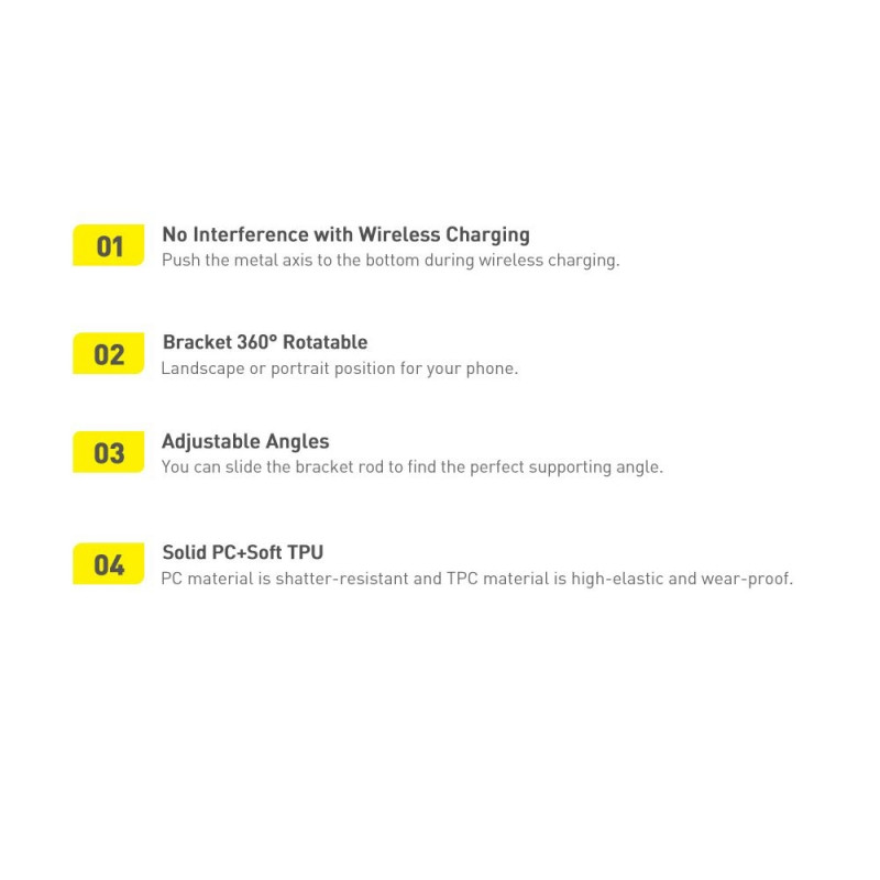 Enjoy the convenience of the Baseus stand anywhere! Thanks to it, you will be able to comfortably watch your favorite series on the train, bus or outdoors. Folding stand allows you to set the phone in a vertical and horizontal position.