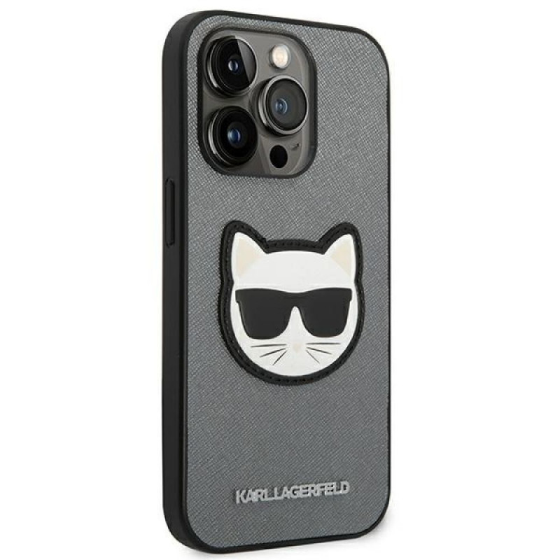 Karl Lagerfeld KLHCP14XSAPCHG iPhone 14 Pro Max 6.7" hardcase silver Saffiano Choupette Head
