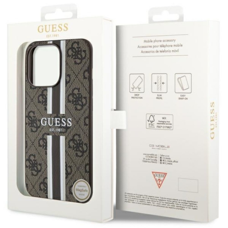 Guess GUHMP13LP4RPSW iPhone 13 Pro / 13 6.1" brown hardcase 4G Printed Stripes MagSafe