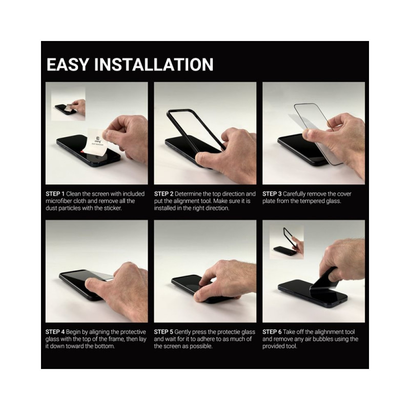 Precyzyjną instalację szkła na całej powierzchni ekranu ułatwia specjalna ramka montażowa, która pozwala dopasować i nakleić szkło bez specjalistycznej pomocy. W przeciwieństwie do innych szkieł, 3D Armour Glass z ochroną antybakteryjną posiada również klej na całej powierzchni, co zapewnia dokładne przyleganie i bezproblemową obsługą ekranu dotykowego. Specjalna osłonka w górnej części szkła ogranicza też brudzenie się głośnika w telefonie.