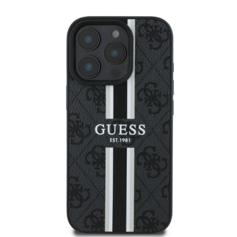 Guess GUHMP16LP4RPSK iPhone 16 Pro 6.3" black hardcase 4G Printed Stripes MagSafe