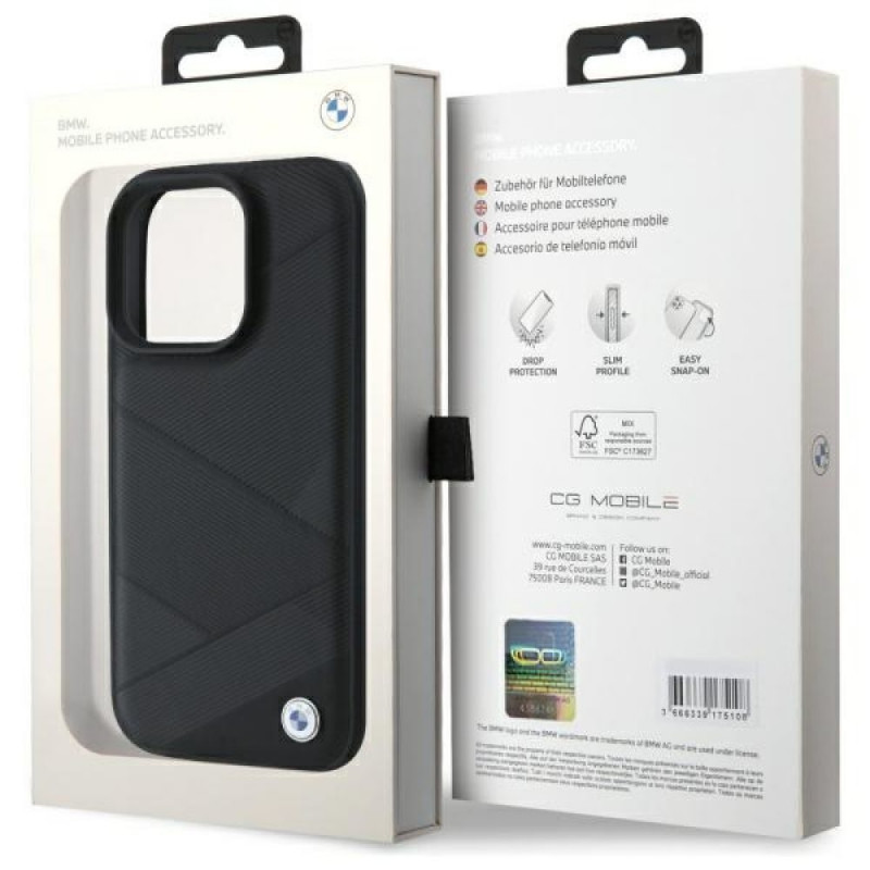 BMW BMHCP16X23RCGPK iPhone 16 Pro Max 6.9" black hardcase Sign Leather Crossing Lines Patt