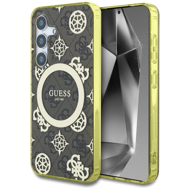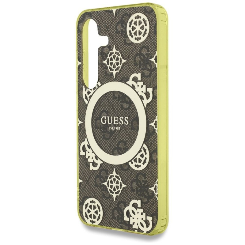 Case Guess 4G Background Gold Electroplated Peony Pattern MagSafe forSamsung Galaxy S25 brown