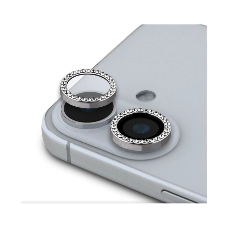 Guess Apple iPhone 16/16 Plus Fixed Glliter Protective Lens Silver