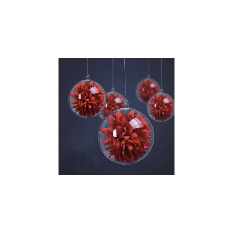 - ROZKŁADANE NA PÓŁ ? bombka rozkłada się na pół, dzięki temu masz możliwość włożenia do środka pięknych ozdób takich jak: piórka, brokat, mech, sztuczny śnieg, wstążki czy confetti. Można także zrobić słodką bombkę wystarczy parę cukierków i gotowe. Kule można także pomalować od środka czy z zewnątrz.