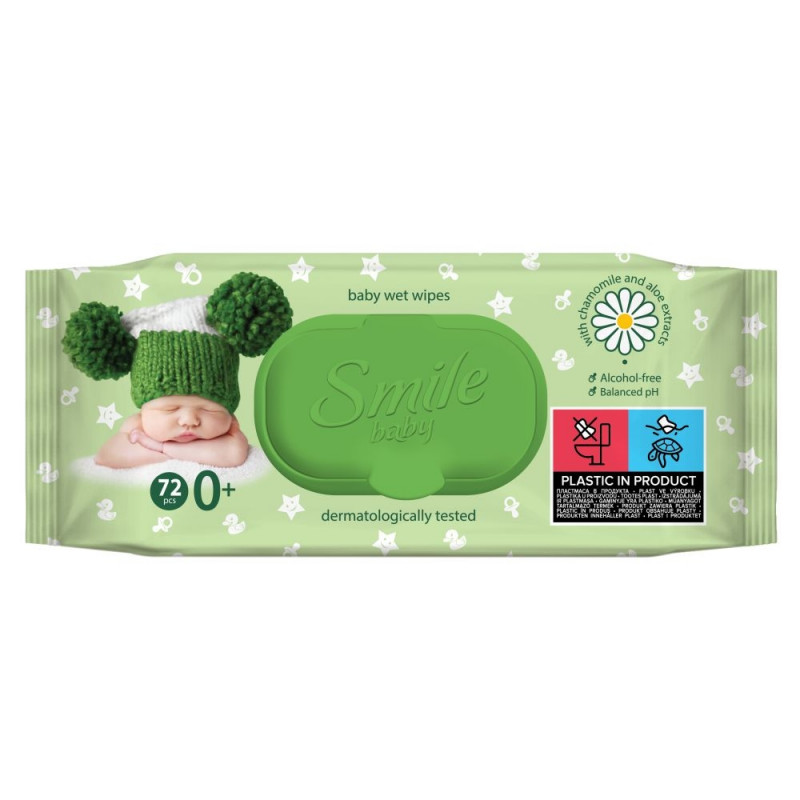 Smile niisked salvrätikud beebidele, kummel ja aaloe, 72 tk