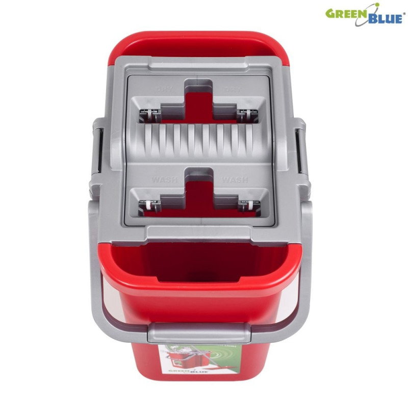 MOP GreenBlue MaxiClean GB850 składa się z wiaderka na wodę wyposażonego w mechanizm, umożliwiający płukanie mopa. Mechanizm wyżymania umożliwia kontrolę stopnia nasączenia mopa, nawet do sucha.