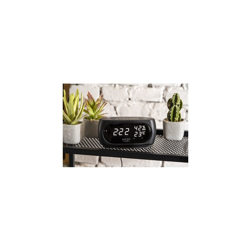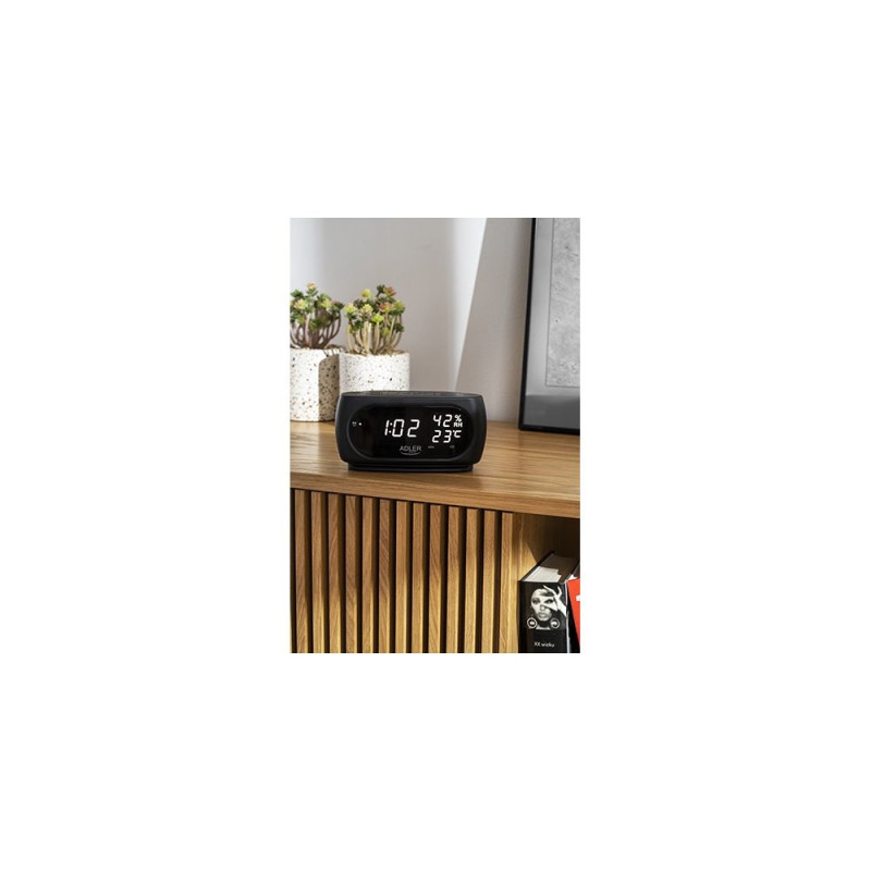 AD 1186 black Zegar - budzik z pomiarem temperatury i wilgotności