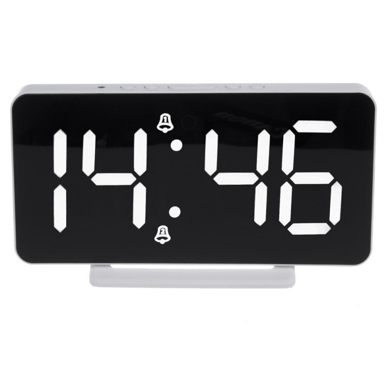 Nowoczesny zegar wyposażony w duży, czytelny ekran, który idealnie wkomponuje się w każde wnętrze, niezależnie czy urządzone jest w stylu klasycznym lub nowoczesnym. Duże cyfry zapewniają czytelność nawet z większej odległości, a wbudowany czujnik pozwala na wyświetlanie temperatury otoczenia.