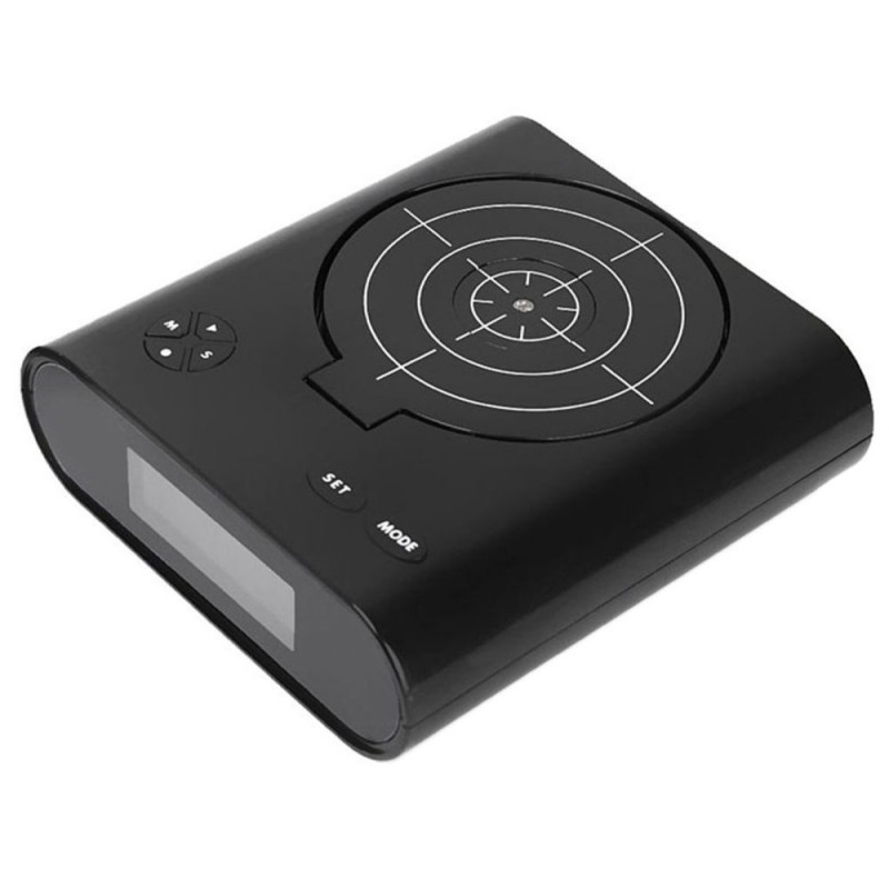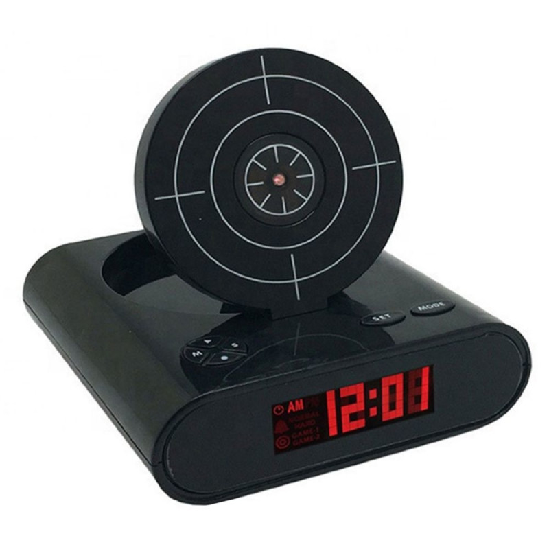 Budzik snajpera z tarczą i pilotem w kształcie pistoletu to genialny gadżet i doskonały pomysł na prezent dla każdego śpiocha! Jeśli masz problemy ze wstawaniem bądź nie możesz wywlec z łóżka Twojej drugiej połówki poważnie weź pod uwagę niniejsze rozwiązanie :) Jedyna możliwość wyłączenia ustawionego alarmu (domyślnego bądź też własnego, wcześniej nagranego i wystarczająco irytującego dźwięku) to wycelowanie pistoletem (pilotem) w stronę tarczy i skierowanie na niej wiązki podczerwieni. To nie tylko skuteczna metoda na pobudkę (budzik podniesie nawet umarłego), ale również świetna zabawa! Nawet nie zauważysz momentu od którego zechce Ci się w końcu odrywać głowę od poduszki! Urządzenie nie wymaga dostępu do sieci elektrycznej. Do jego zasilenia wystarczy komplet 6 baterii AA (4 baterie do budzika i 2 baterie do pistoletu).