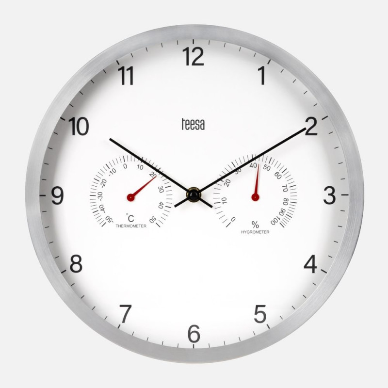 Elegancki i funkcjonalny zegar ścienny Teesa to idealne rozwiązanie do każdego wnętrza ? domu, biura, warsztatu czy poczekalni. Dzięki swojej funkcjonalności zegar umożliwia nie tylko precyzyjne odmierzanie czasu, ale także monitorowanie warunków otoczenia. To praktyczny dodatek dla osób ceniących wygodę i kontrolę nad mikroklimatem w pomieszczeniu.