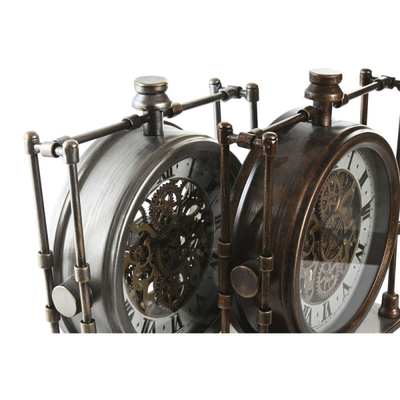 Table clock Home ESPRIT Golden Silver Vintage (2 Units)