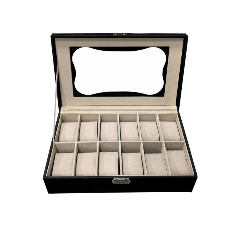 Box for watches Versa Black Polyurethane Paper Mirror MDF Wood 20 x 8,5 x 32,5 cm
