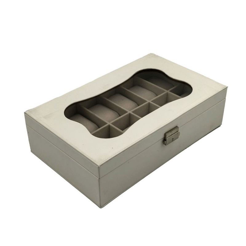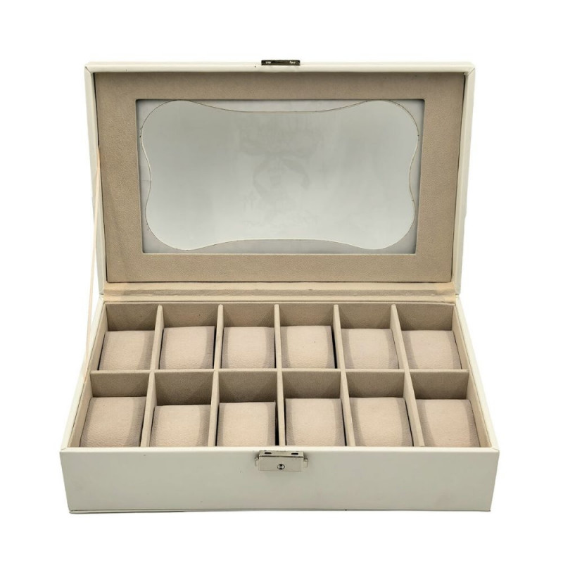 Box for watches Versa White Polyurethane Paper Mirror MDF Wood 20 x 8,5 x 32,5 cm
