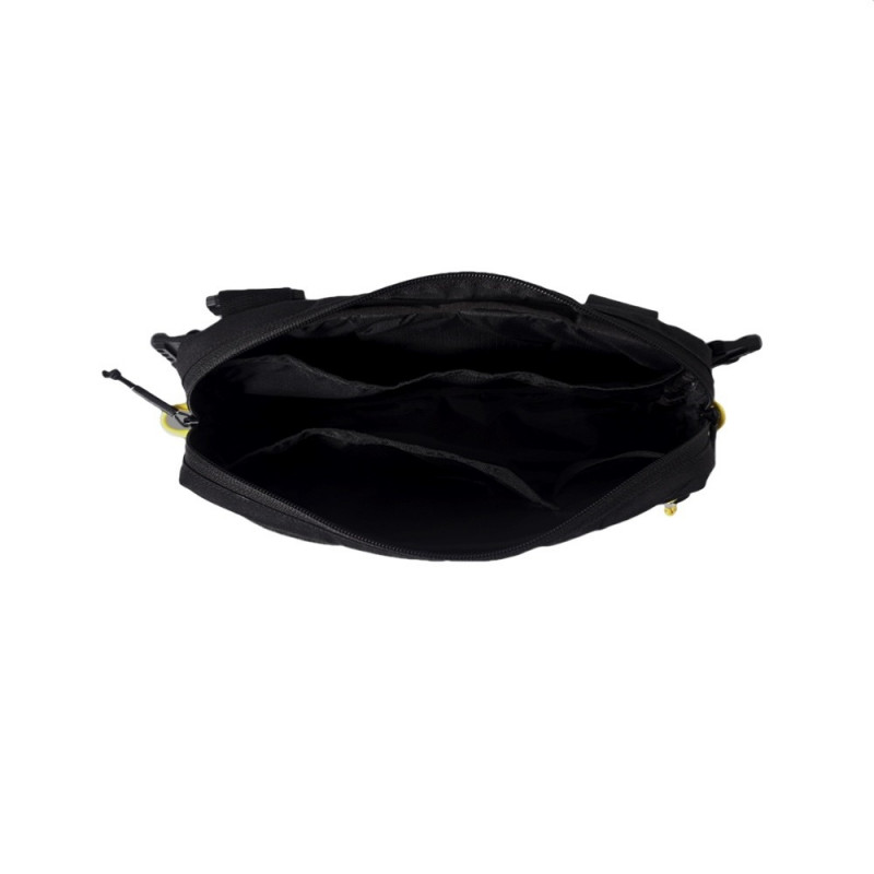 The bag has a spacious zip pocket with two slip pockets inside and a zip pocket on the outside. At the bottom, it features a MOLLE web to which you can make your own pouches or stick Velcro patches. There are also two elastic bands where you can attach an umbrella, for example.,