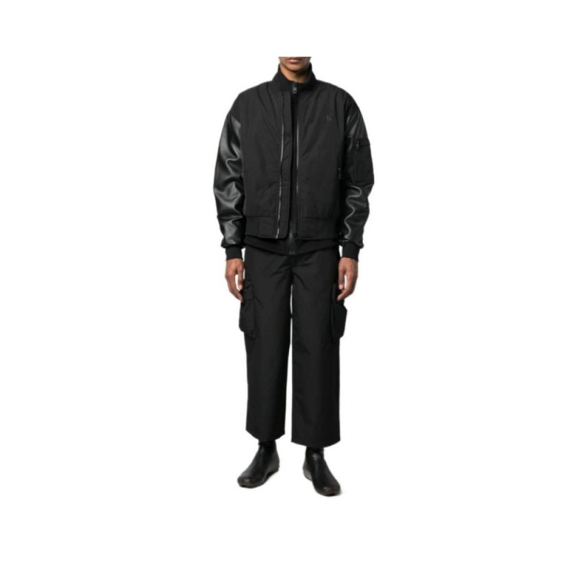 Calvin Klein Jeans M J30J322643 jacket Properties: men's bomber jacket by Calvin Klein Jeans made partly of eco-leather RECONSIDERED line - clothing made from recycled materials regular fit side pockets with zippers without hood Color: blackWarning: Last items in stock!