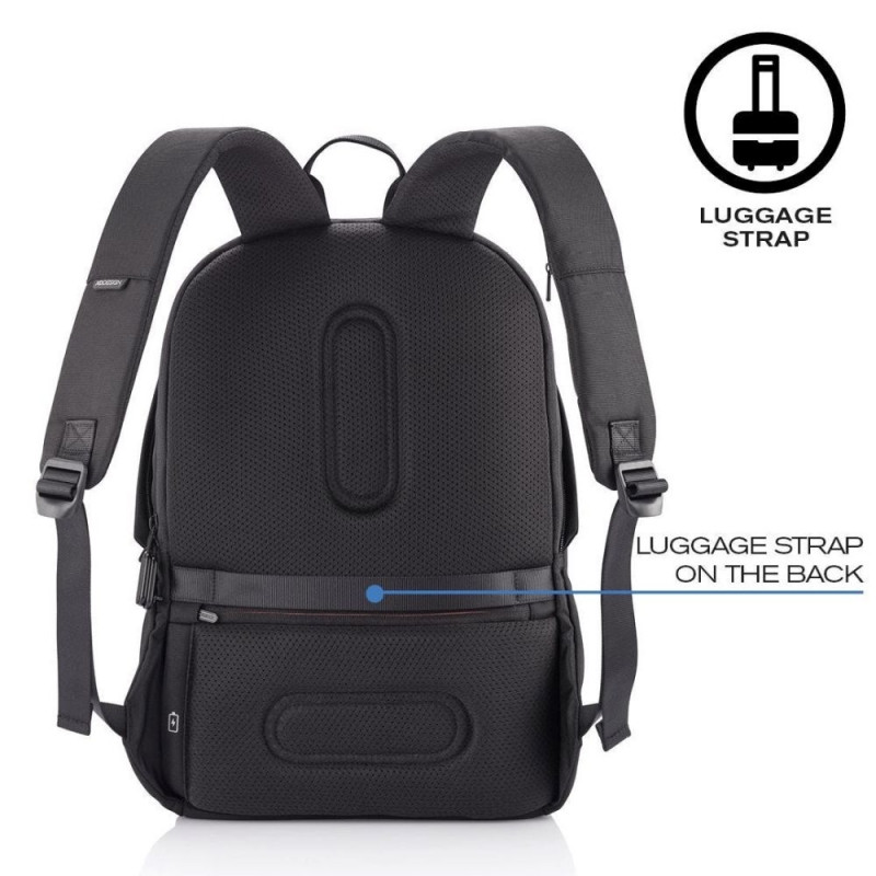 The XD DESIGN ANTI-THEFT BACKPACK BOBBY SOFT BLACK features RFID protected pockets and a lockable main slider for secure device storage, as well as an anti-theft design with hidden zipper. It also includes multiple hidden pockets and an integrated USB port for convenient charging on the go.Warning: Last items in stock!