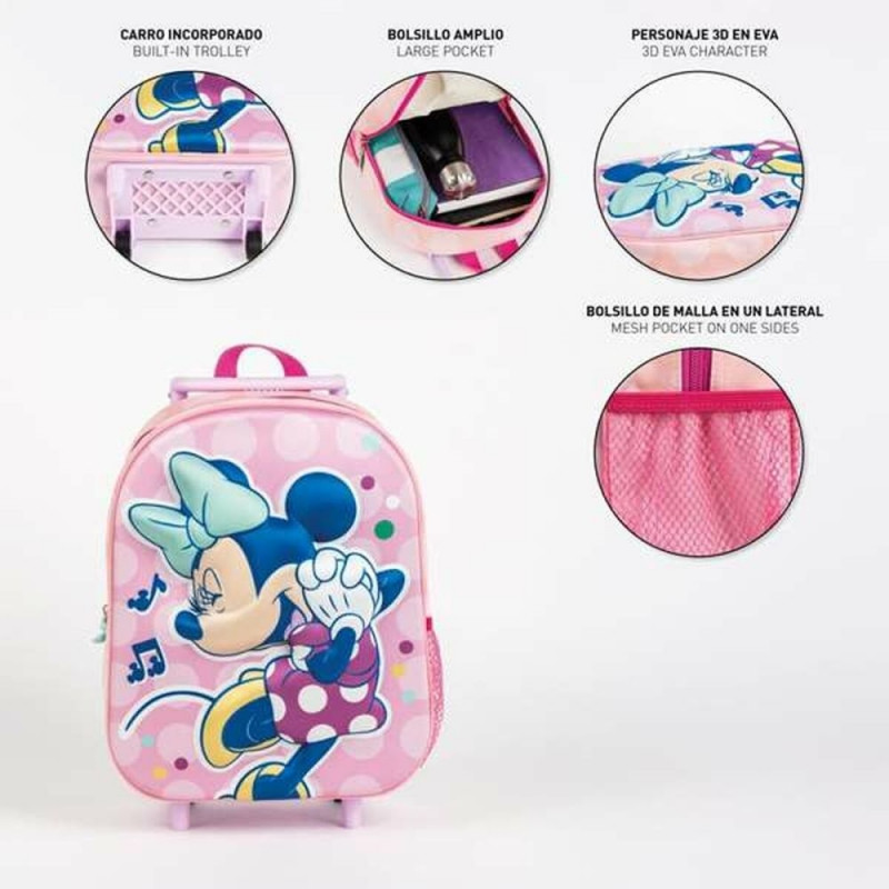 3D School Bag with Wheels Minnie Mouse Pink 25,0 x 31,0 x 10,0 cm