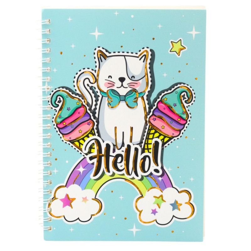 Zeszyt Notatnik W Linie Kot Jednorożec Lody Tęcza Turkusowy A5 60 Kartek