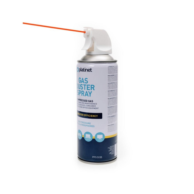 PLATINET compressed air removes dust from hard-to-reach places where wet cleaning cannot be used. Recommended for cleaning: cash registers, computers (cleaning keyboards, inside computer casing), office equipment, copiers, printers, photographic equipment, precision mechanics and telecommunications devices.