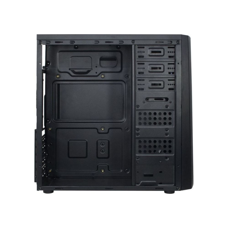 Notes: Design front panel, deburred edges, good airflow, 1x 140 mm or 1x 120 mm fan can be installed in the side panel, side panel secured with knurled screws, reset button