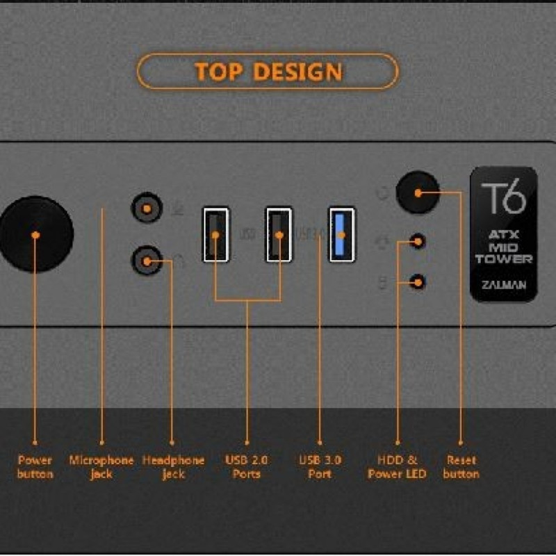 ZALMAN T6 ATX Mid Tower PC Case 120mm fan ODD