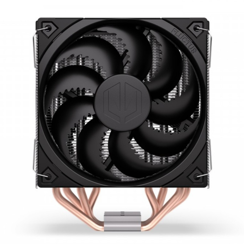 The airflow is provided by two award-winning Fluctus 120 PWM fans with an optional semi-passive mode. Their blades have been profiled to sweep the densely stacked heatsink fins as precisely as possible. Such a set-up works in a push-pull system, which further lowers the CPU temperature. We have a theory that if it were to be enlarged sufficiently, another ice age would be unleashed on the world exemplary at lowering temperatures.