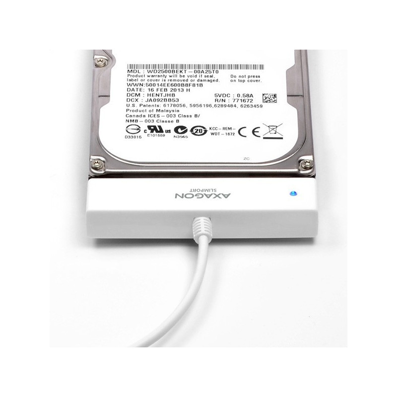 The compact AXAGON ADSA-1S SLIMport3 adapter with USB 2.0 interface for easy connection to a 2.5" SATA disk.