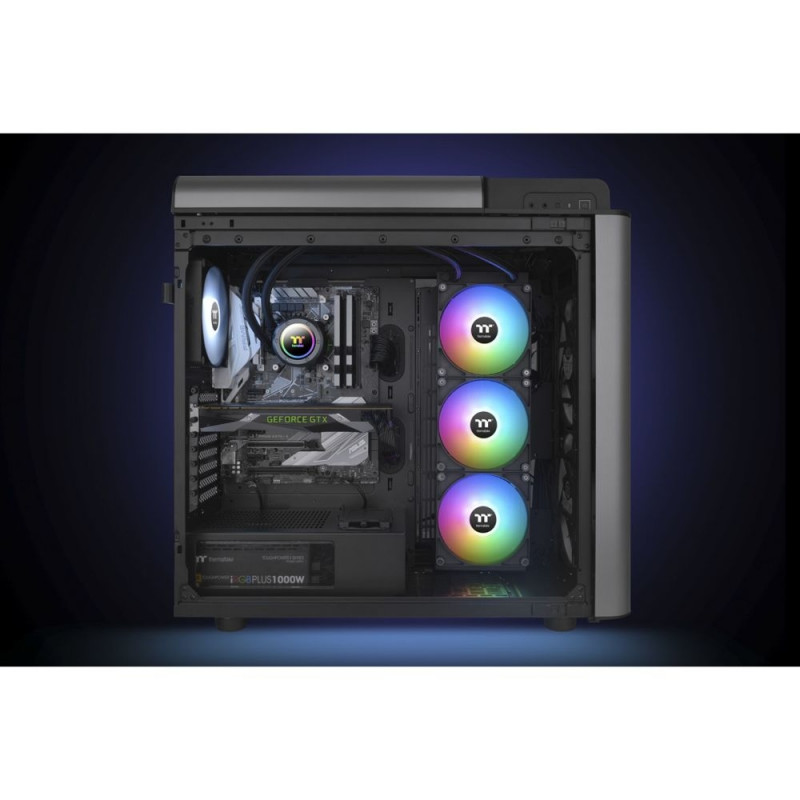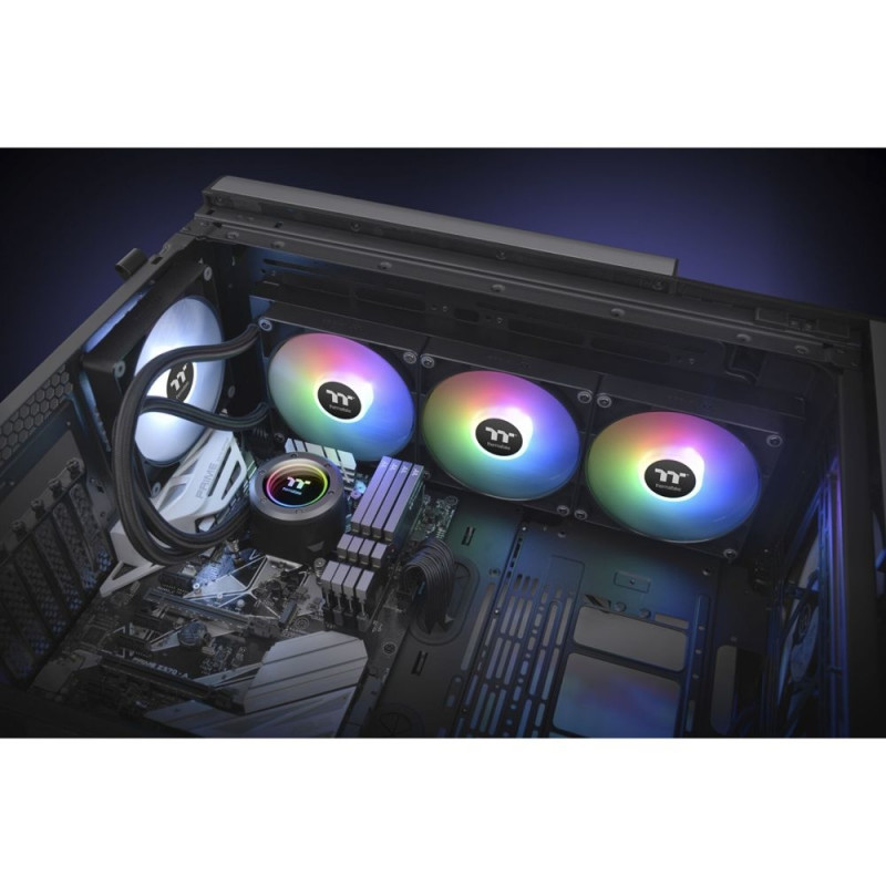 The TH420 V2 ARGB Sync all-in-one water cooling system has an industrial design pump cap and is equipped with three CT140 ARGB fans. It is suitable for cases that fit 420mm AIOs.