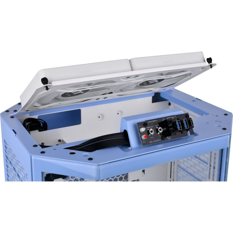 The Tower 300 Hydrangea Blue is an m-ATX case in a classic vertical design with an octagonal prism shape. It supports up to 420 mm AIO coolers on the right-hand side and offers space for up to eight 120/140 mm fans. In addition, The Tower 300 can be upgraded with a separately available LCD panel kit with a 3.9-inch LCD screen to maximize the visual effects of the PC.